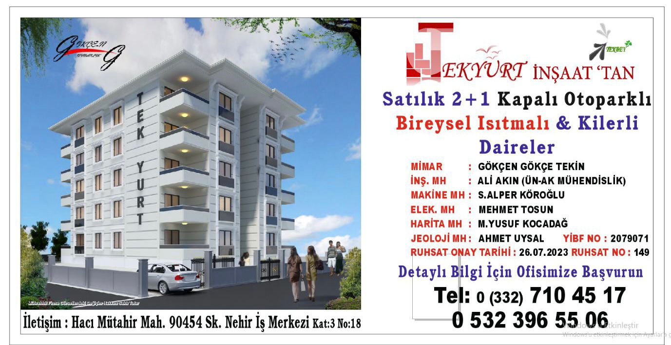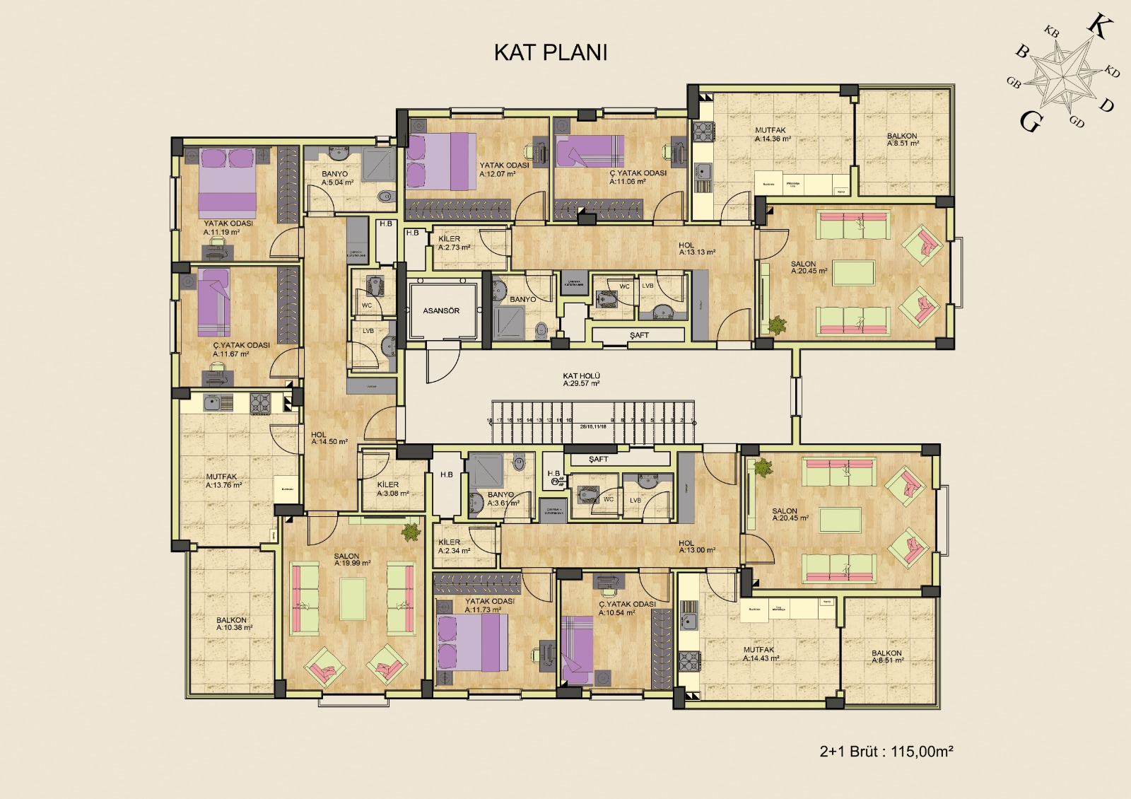 2+1 Brüt 115 metrekare Toplam 15 Daire